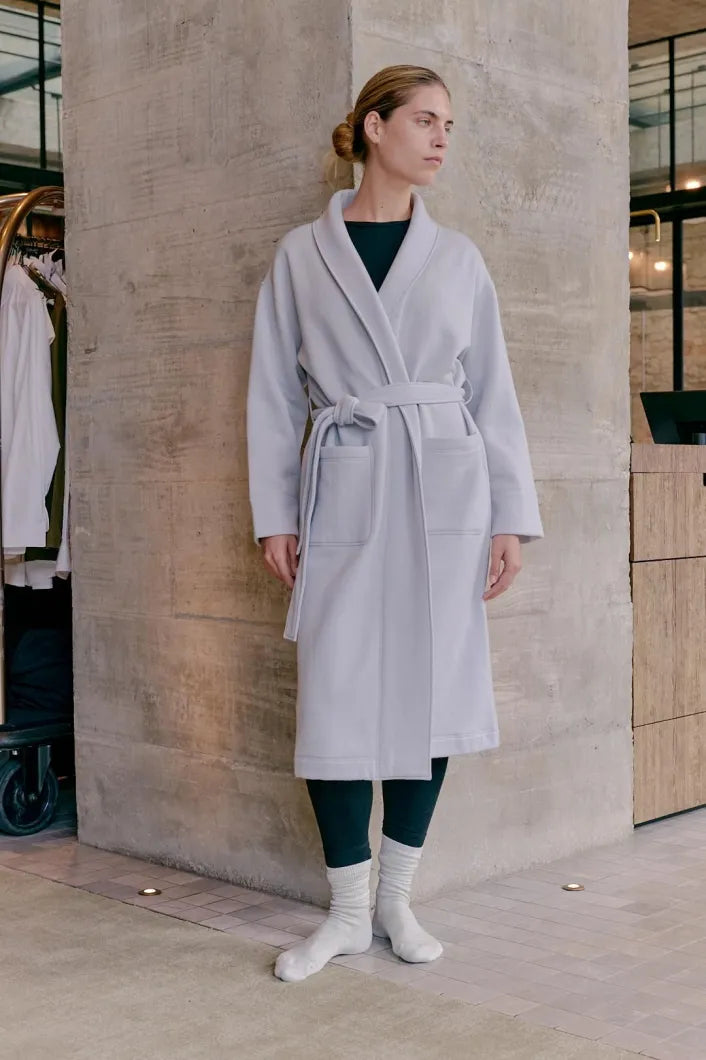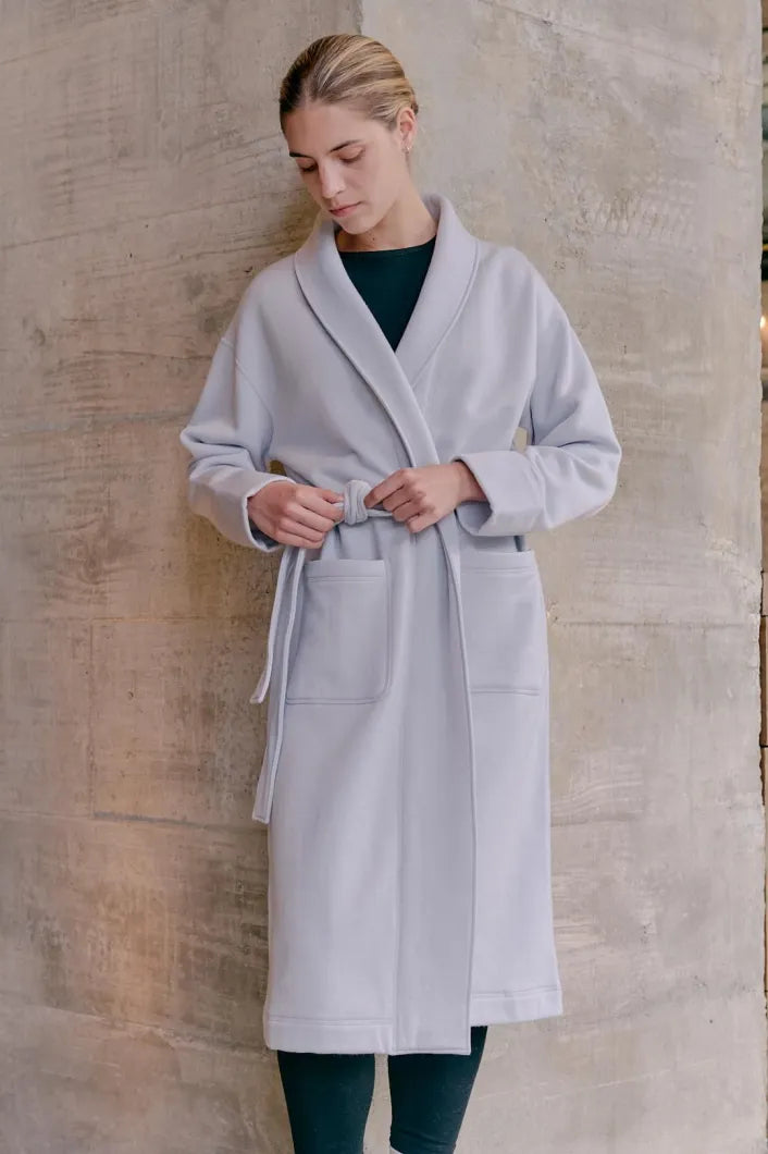 家でのリラックスタイムにも、ちょっとした外出にも。マシュマロのように柔らかく軽い、そして何より温かいメリノウールフリースのガウンです。