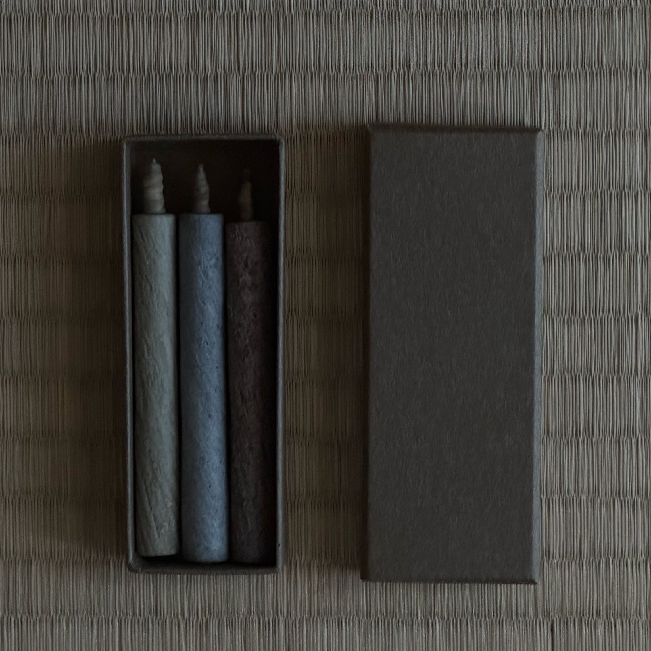 3本セットになっておりますが、箱と3本の蝋燭は作家の制作の都合上変わります。ご希望がありましたら作家にオーダーしますので、お時間をいただきますが、メールにてご連絡ください。shop@drivedirection.jp