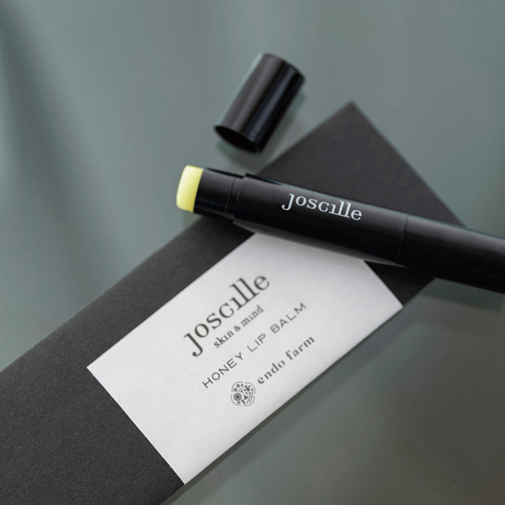 旅するジョシーユの蜂蜜のリップバームは、今回、代々木のマーケットの出店で知り合った遠藤ファームさんの希少なひまわりの蜂蜜を贅沢に使っています。その農法についてお聞きしてとても感動しました。近年の猛暑で蜂蜜も農業も過酷な作業になっている中、真摯に地球と向き合っている姿は本当に素晴らしいと思います。口紅はほとんどつけないので、このリップバームでいつも潤いのあるふっくらとした唇でいられますように。今井