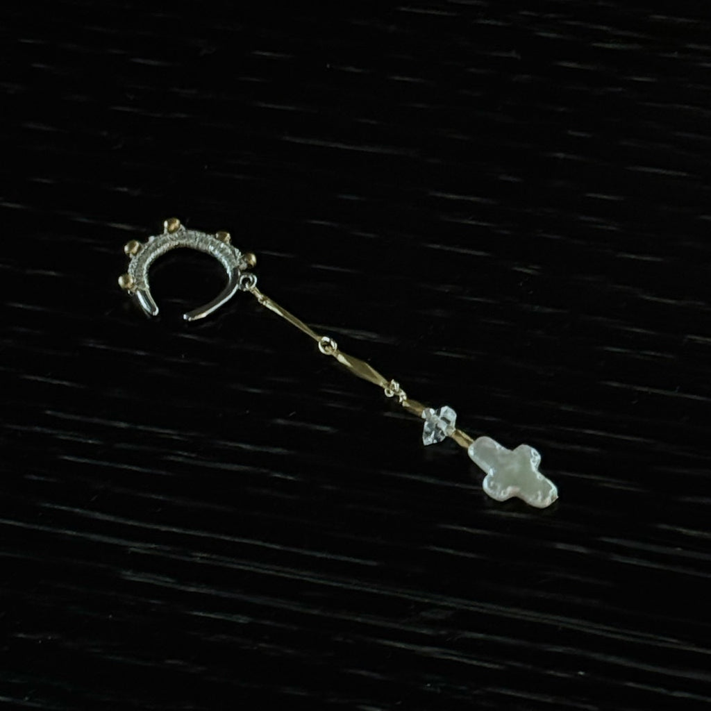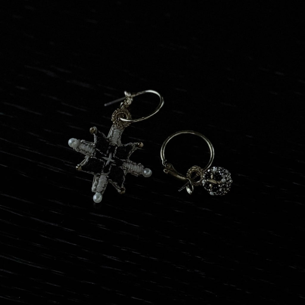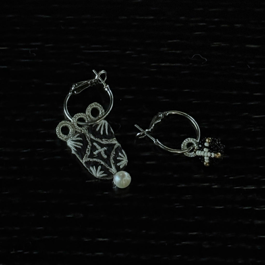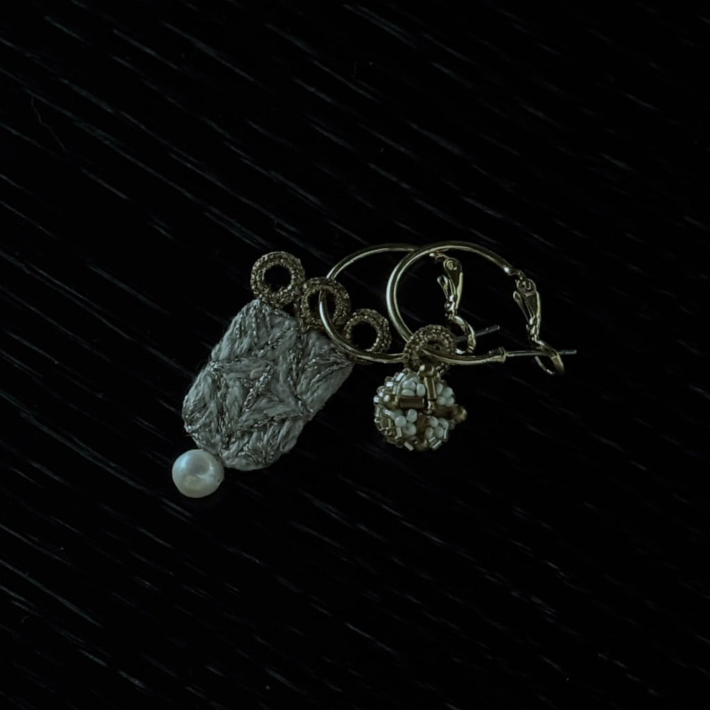 PE-10 vintageスパンコール 淡水パール イヤリング / domaci