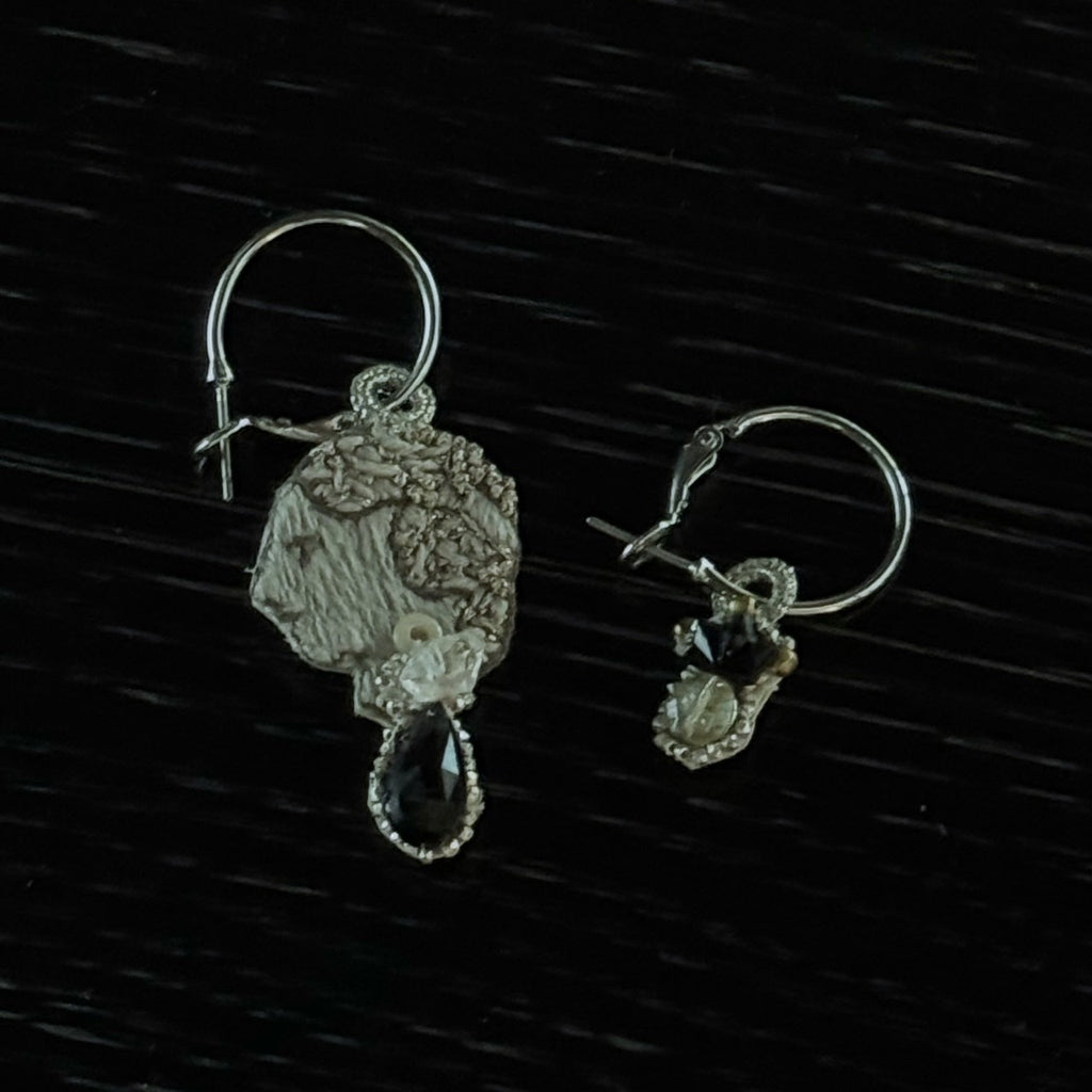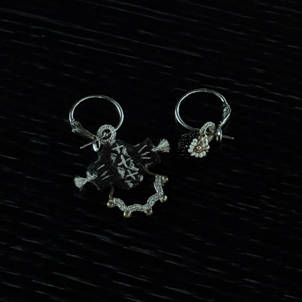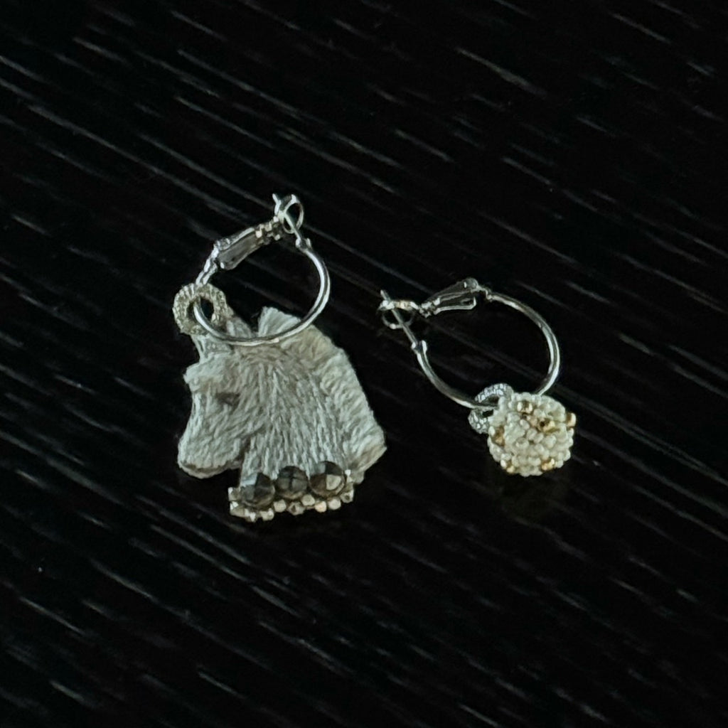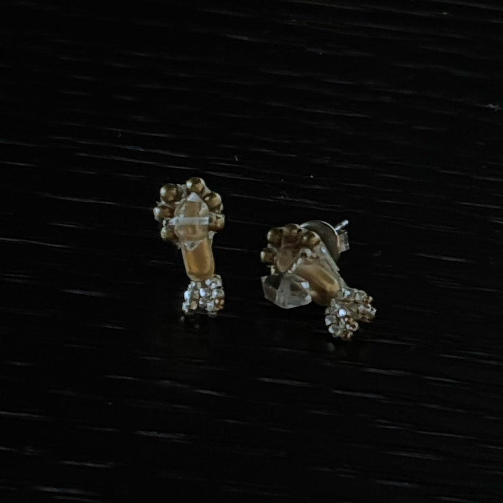 PE-10 vintageスパンコール 淡水パール イヤリング / domaci