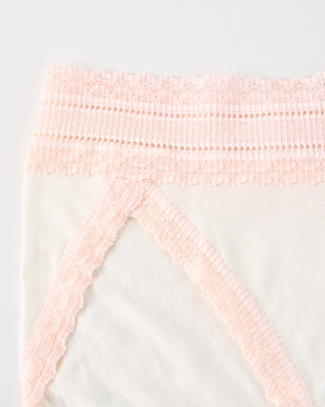 レースはシルク素材ではありませんが、身につけた時のちくちく感を少しでも軽減できるよう、肌に当たる部分にパイル加工を施しました。