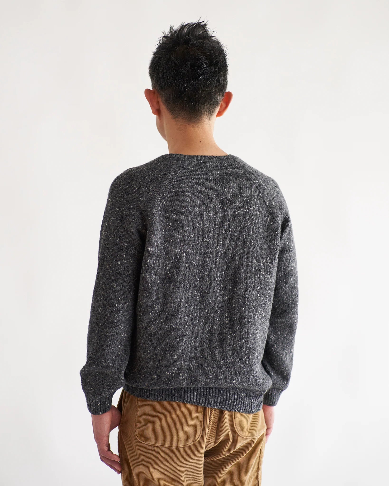 カラーはネップの素材感がより引き立つマーブルグレー。冬のスタイリングが重くなりすぎない万能カラーです。