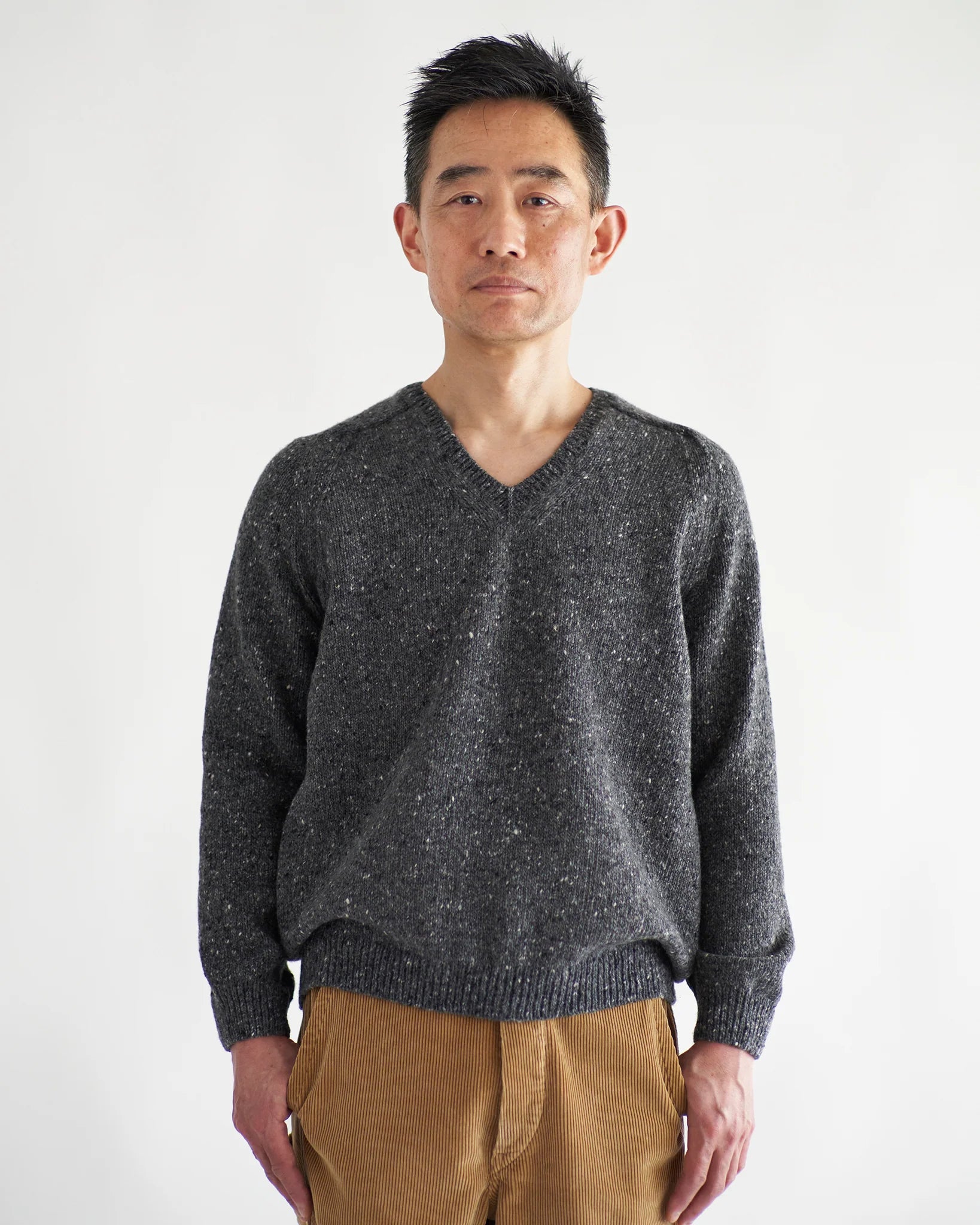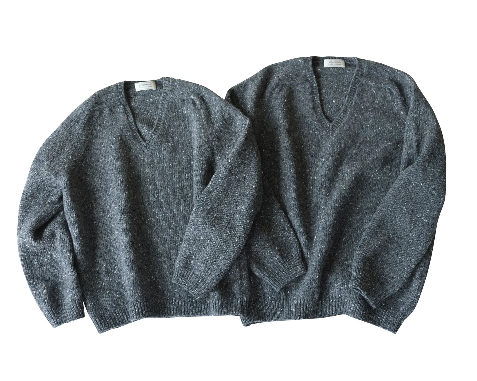 Vネックプルオーバー(hand knitting machine + hand knit)/ マーブルグレー