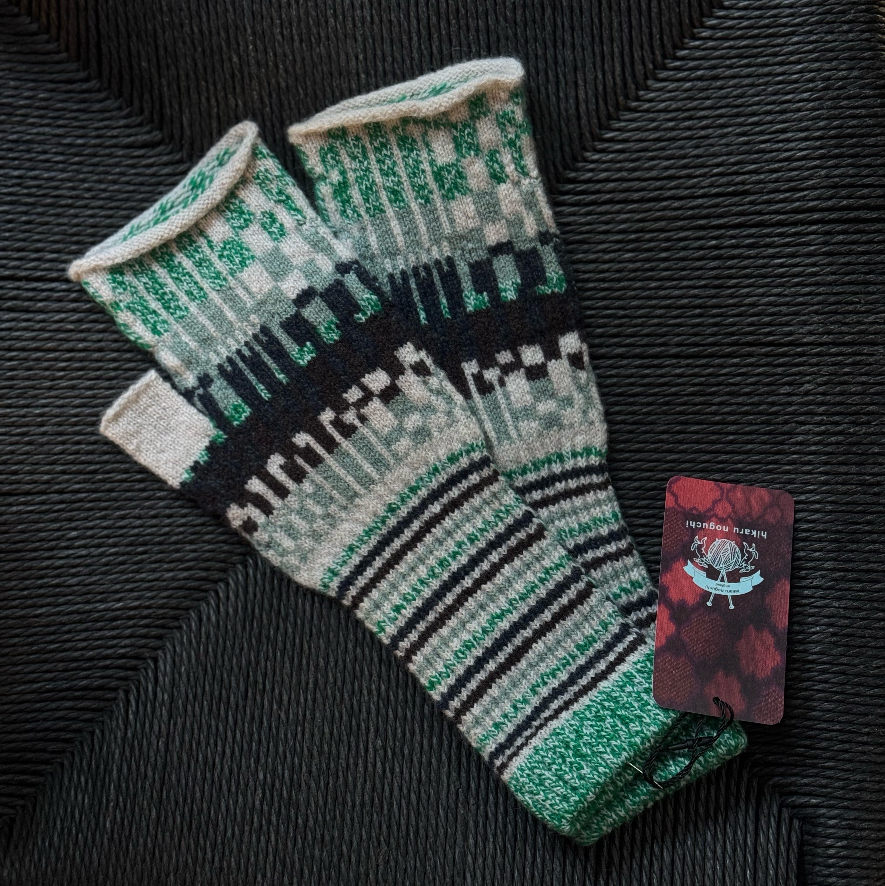 REFLECTION OPEN MITTENS / ECRU + GREEN EDGE 野口光