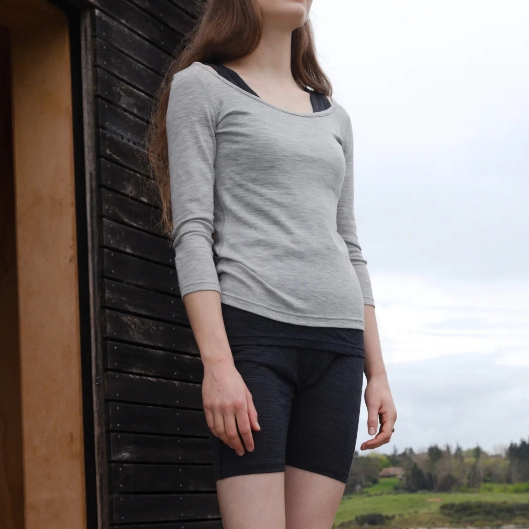 ティティ・リブ バレエネック 7部袖 Light gray 3032-28