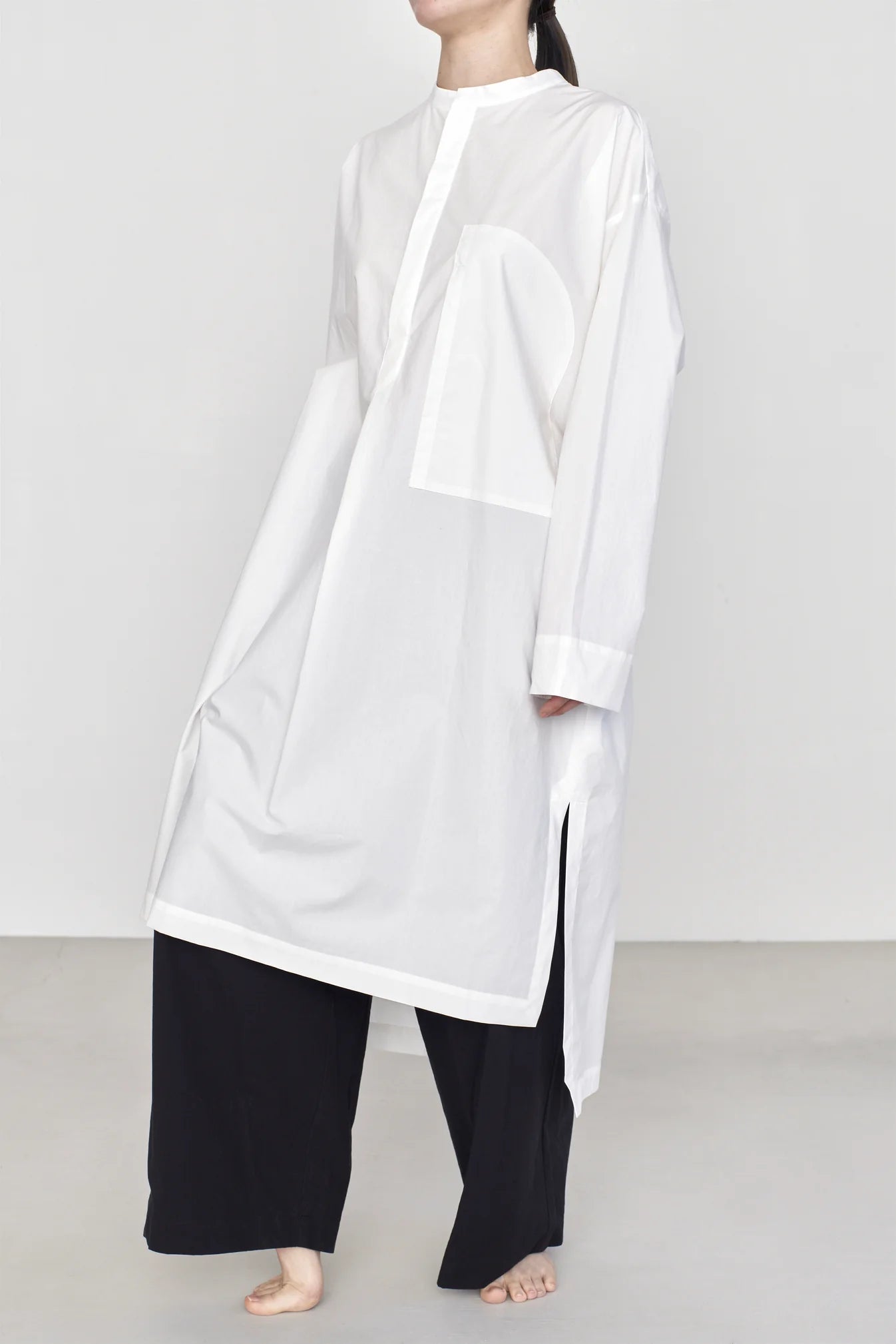 インドの伝統衣装のクルタシャツをインスピレーションに仕立てました。